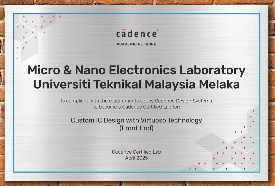 We are proud to announce that the Micro & Nano Electronics Laboratory (UTeM) has officially become a Cadence Certified Lab, meeting the rigorous standards set by Cadence Design Systems!